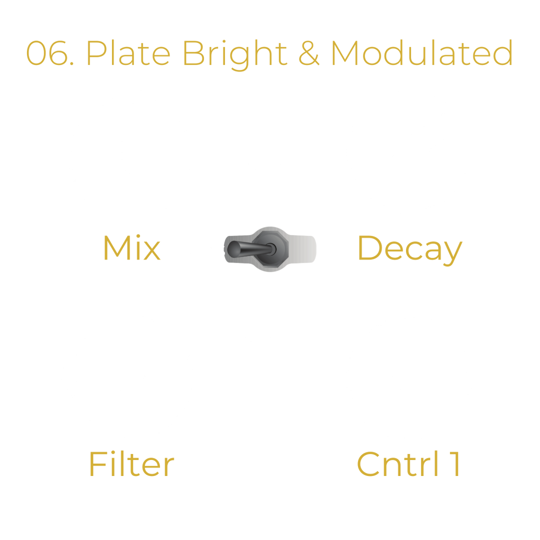 Setting the Toggle Switch to the top position will create a reverb with no pre delay. The reverb signal will immediately bloom in as soon as the guitar signal hits the pedal.